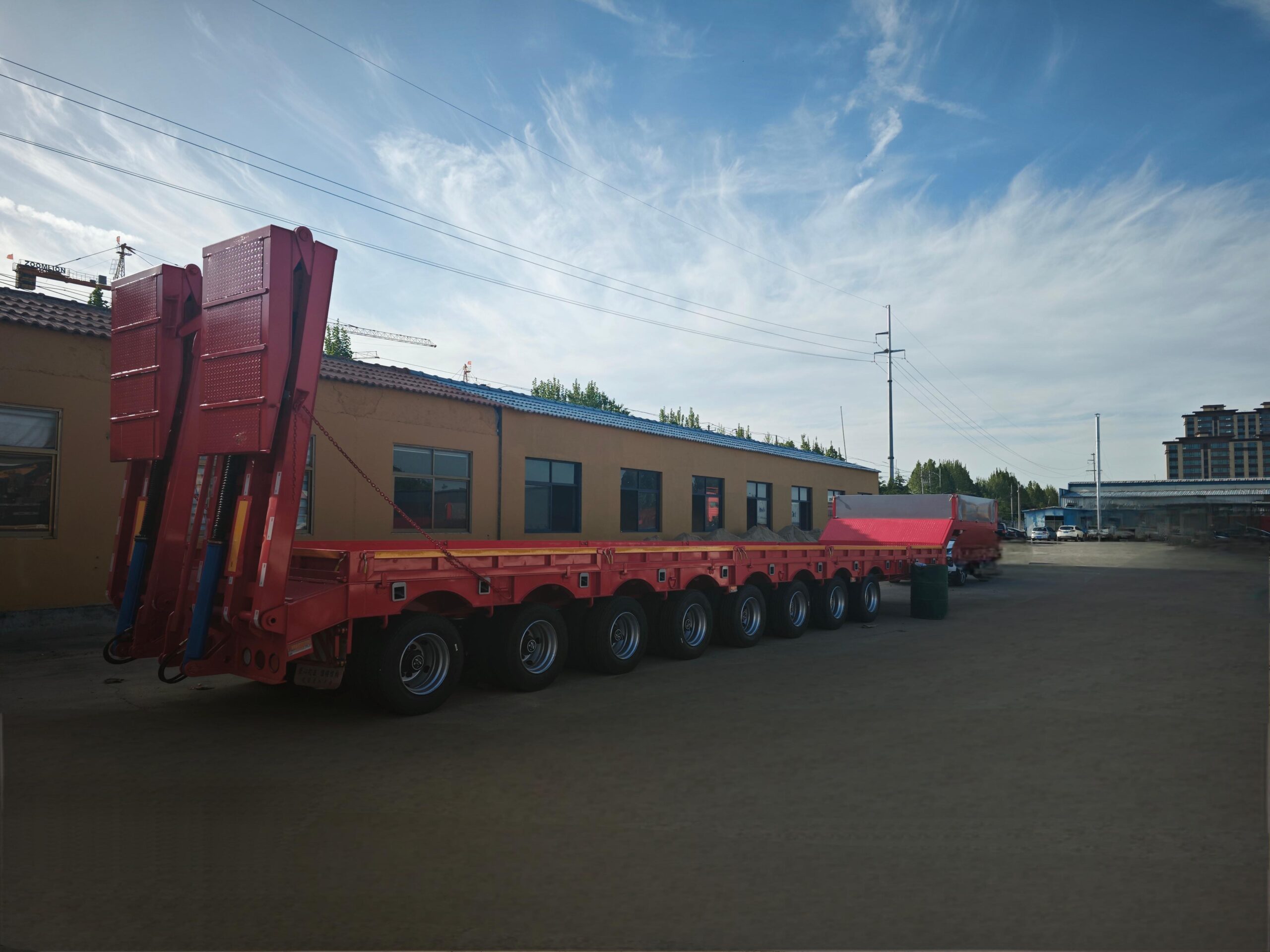The platform height is usually 0.8 ~ 1.2 meters, which lowers the center of gravity, improves stability, and adapts to height-limited road sections. The standard load capacity is 30 ~ 100 tons, and the heavy-duty model can reach more than 200 tons; Made of high-strength steel or alloy material, the frame has strong torsion resistance. A variety of structural designs, optional hydraulic lift, remote control steering, electronic braking system (EBS), or ladders, binding points and other accessories.