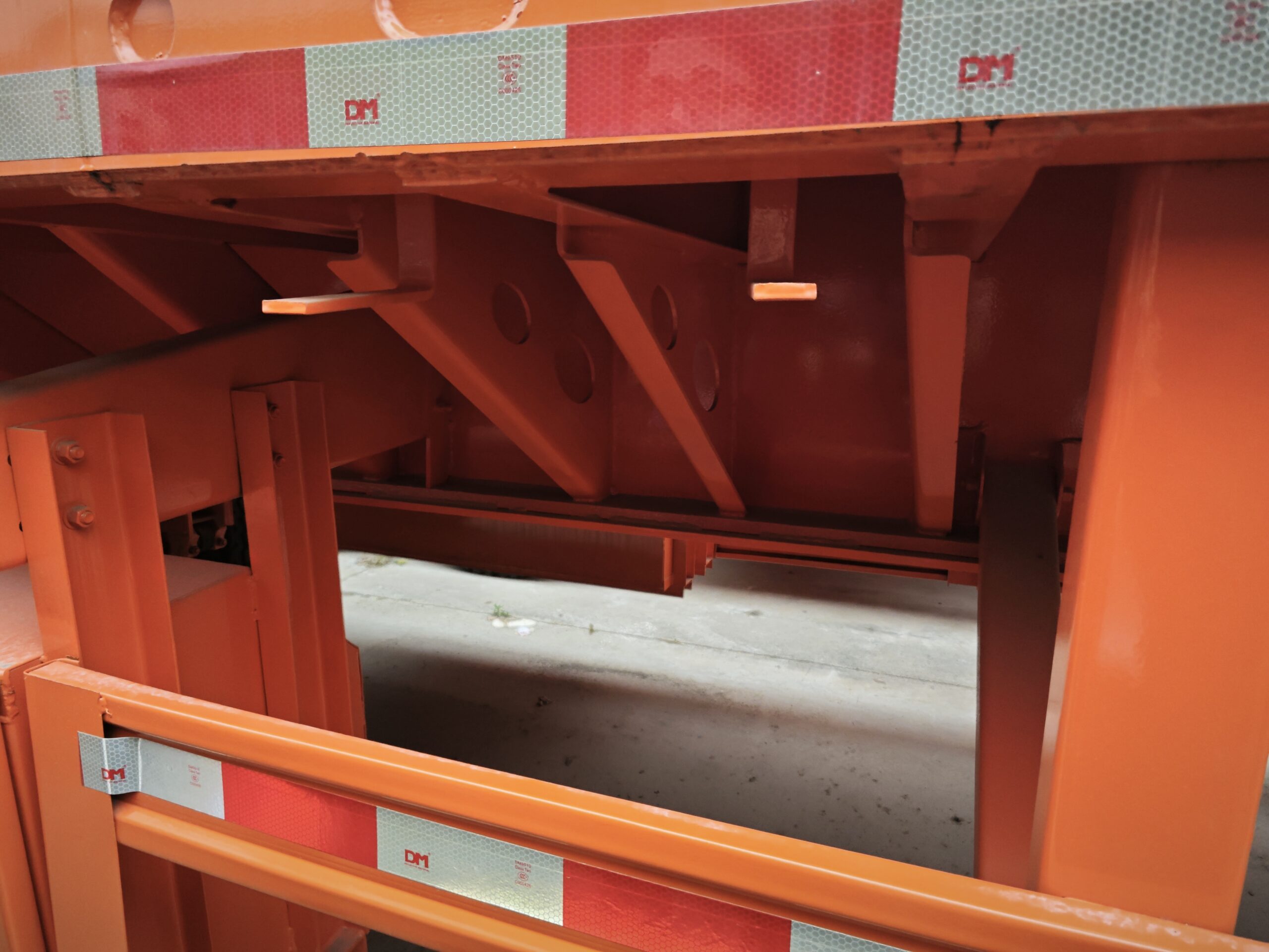 3 13-ton widened axles (without ABS), with 10 13mm thick leaf springs and 60# mechanical suspension, provide excellent load-bearing capacity (total load of about 39 tons) and anti-bumping performance, adapting to complex road conditions. 450-500mm high-strength steel beam (14×8×16mm) with 10# channel steel through beam, with 16# channel steel side beam, the overall structure has high rigidity and strong torsion resistance, ensuring no deformation under heavy load. 4 double 2 single air chamber configuration, with Ruili relay valve, fast braking response, good heat dissipation, and safer long downhill conditions. 12 triangular 12R22.5 vacuum tires (with 14-layer standard steel rims), strong grip, wear resistance and reduce the risk of tire blowout. With high load-bearing and strong structure as the core, this semi-trailer takes into account safety and practicality, and is suitable for efficient heavy-load transportation needs, but it should be noted that there are no ABS system braking restrictions on slippery roads. It is recommended to select auxiliary safety devices according to actual working conditions.